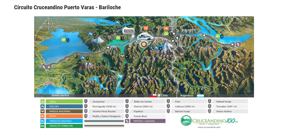 17.15 hrs. Arrival to Puerto Pañuelo, we take the bus to make the final part of our trip with destination to the "Capital of the Argentine tourism", Bariloche. City that fascinates in both winter and summer by its ski resorts, shopping, hotels, restaurants and nightlife.